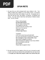 Ifa foresees ire omo (children) for a woman, but ifa advices her to make ebo so that she could born all the children in one tratado enciclopedico de ifa.