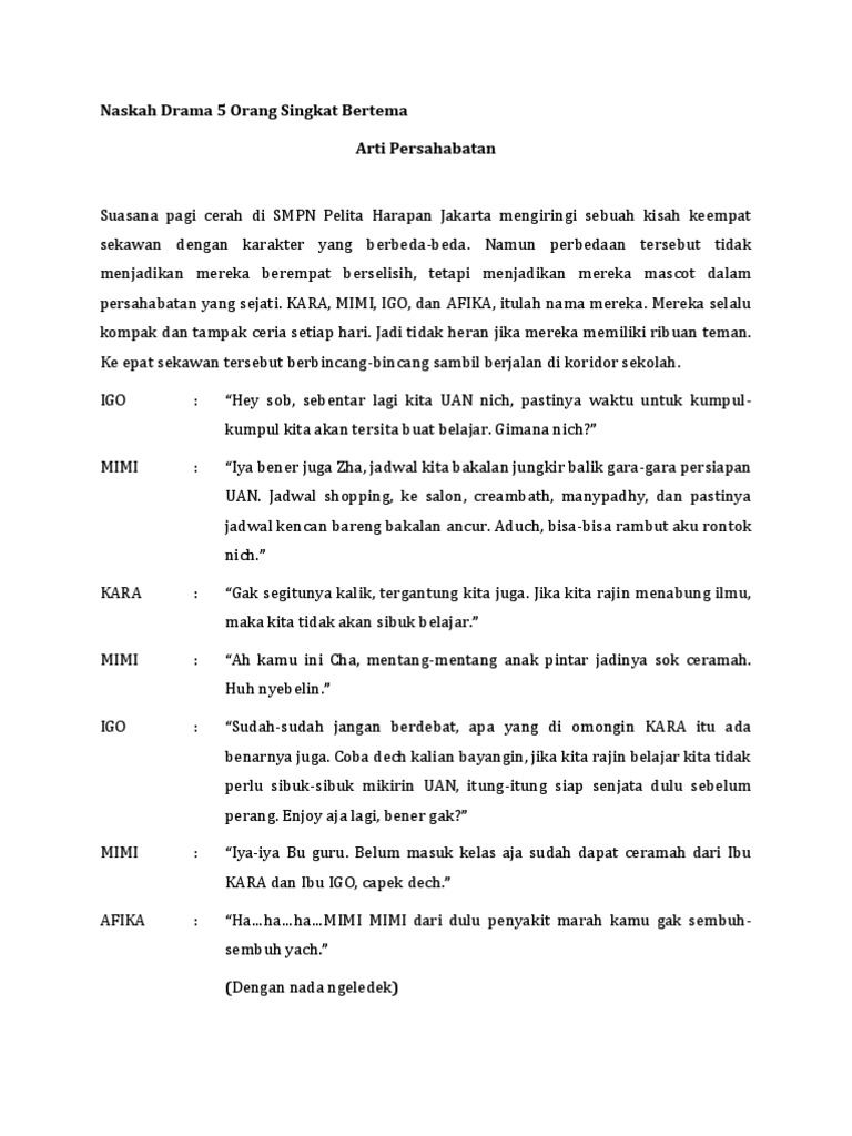 Jgn panjang2 lumayan ajh. Contoh naskah drama binggris 5 tokoh. Tuliskan cerita fabel drama untuk 5 org dan 1 narator - 14659328 1.